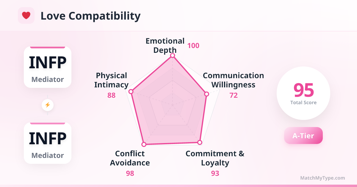 - 3**Emotional Dumping Ground**: While you are great listeners, if you both use each other as the only outlet for negativity, the system will overload. INFPs need solitude to process, not just a constant stream of the partner's sorrow.