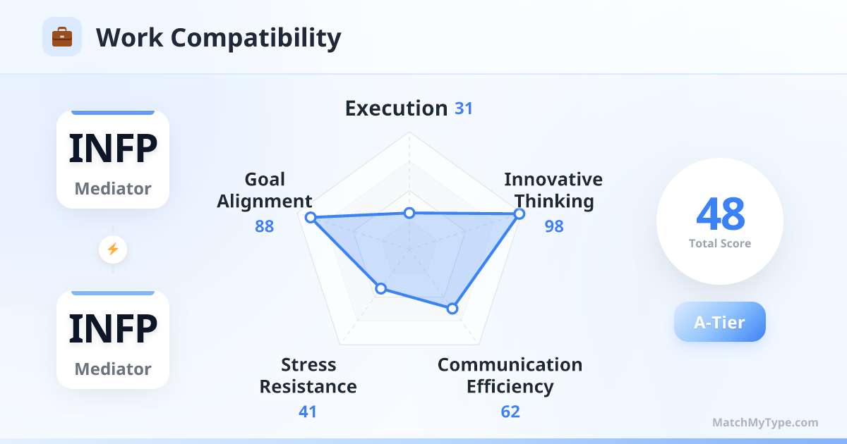 In the workplace, two INFPs are the 'Best Creative Duo' and the 'Worst Execution Team.' You can spend an afternoon dreaming up a world-changing plan but forget to take the first step for a month.