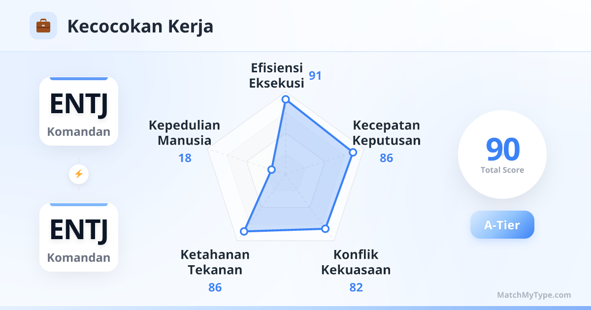 Jika tidak dikendalikan, ini akan berubah menjadi drama 'Tiran' vs 'Pemberontak'. Bawahan ENTJ tidak akan patuh buta; mereka akan menantang logika bosnya. Bos harus berjiwa besar, menganggap bawahan sebagai 'partner' alih-alih 'mesin pelaksana', dan mendelegasikan sektor independen kepada mereka.