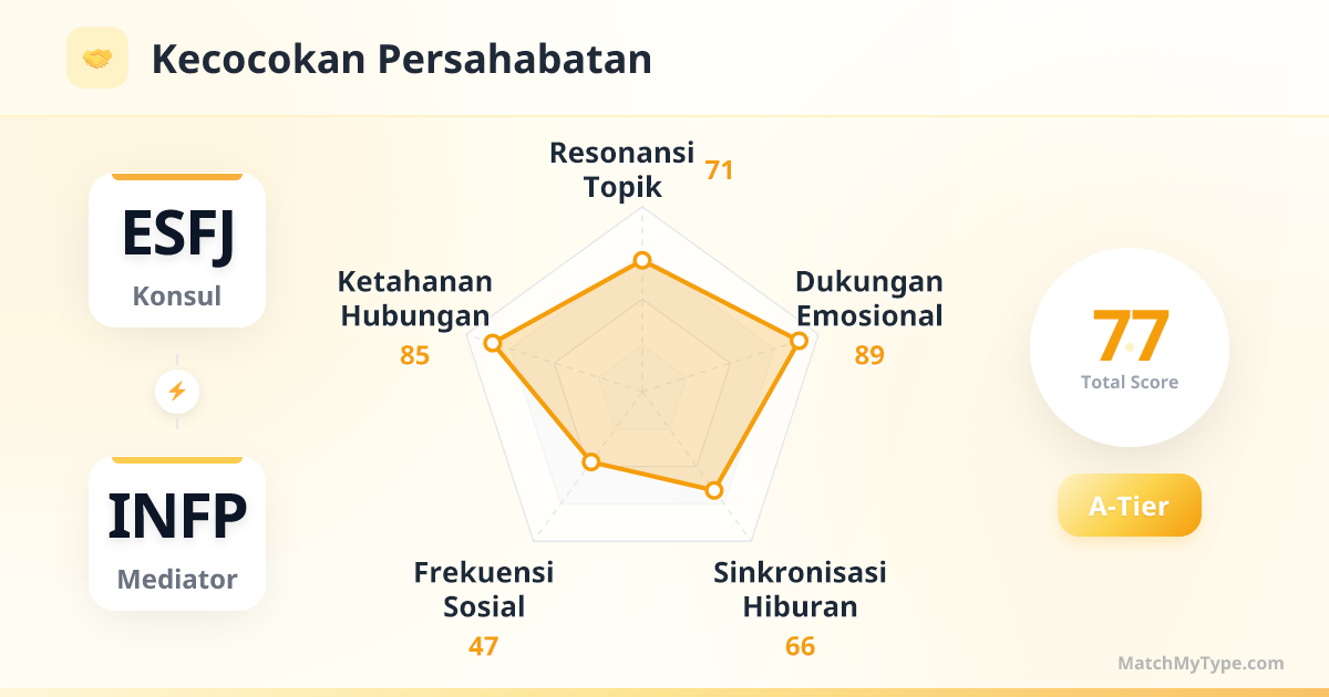 - 3**Obsesi Sosial**: ESFJ sebaiknya tidak menyeret INFP ke pesta penuh orang asing; INFP juga jangan selalu menolak undangan makan malam keluarga ESFJ.