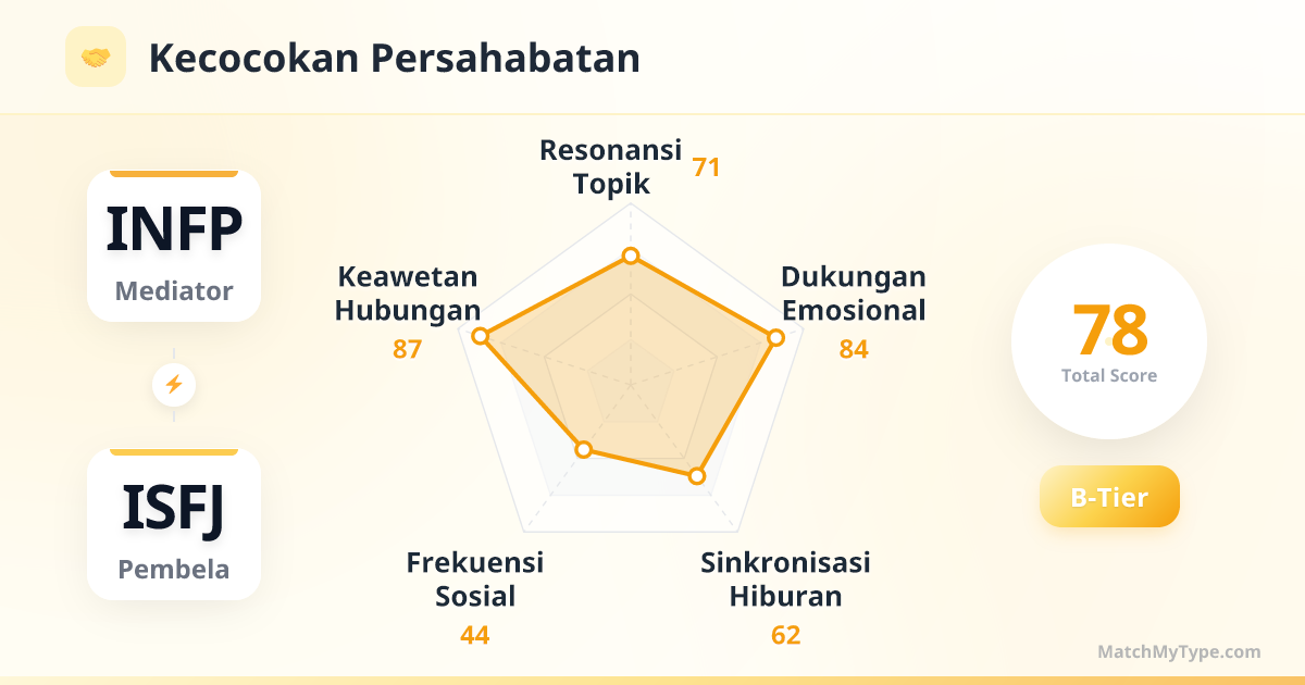 - 3**Konflik Nilai yang Tersembunyi**: ISFJ cenderung tradisional (menikah, punya anak, beli rumah), INFP cenderung bebas (berkelana, tanpa anak, mengejar mimpi). Jika tidak dikomunikasikan sejak dini, konflik fundamental akan meledak di masa depan.