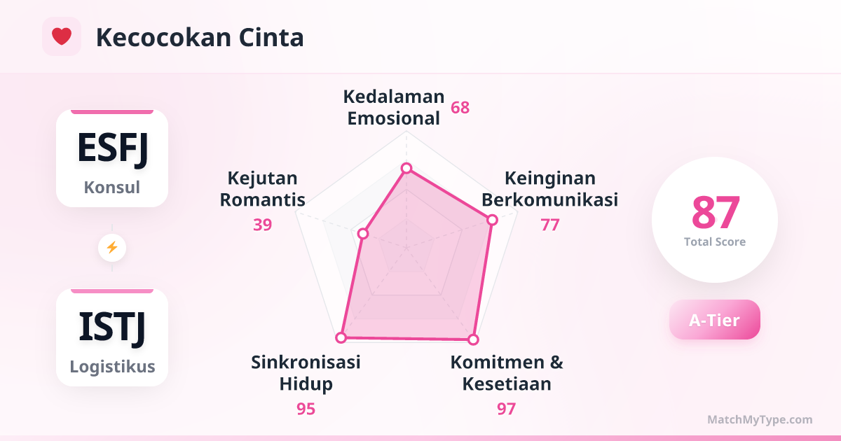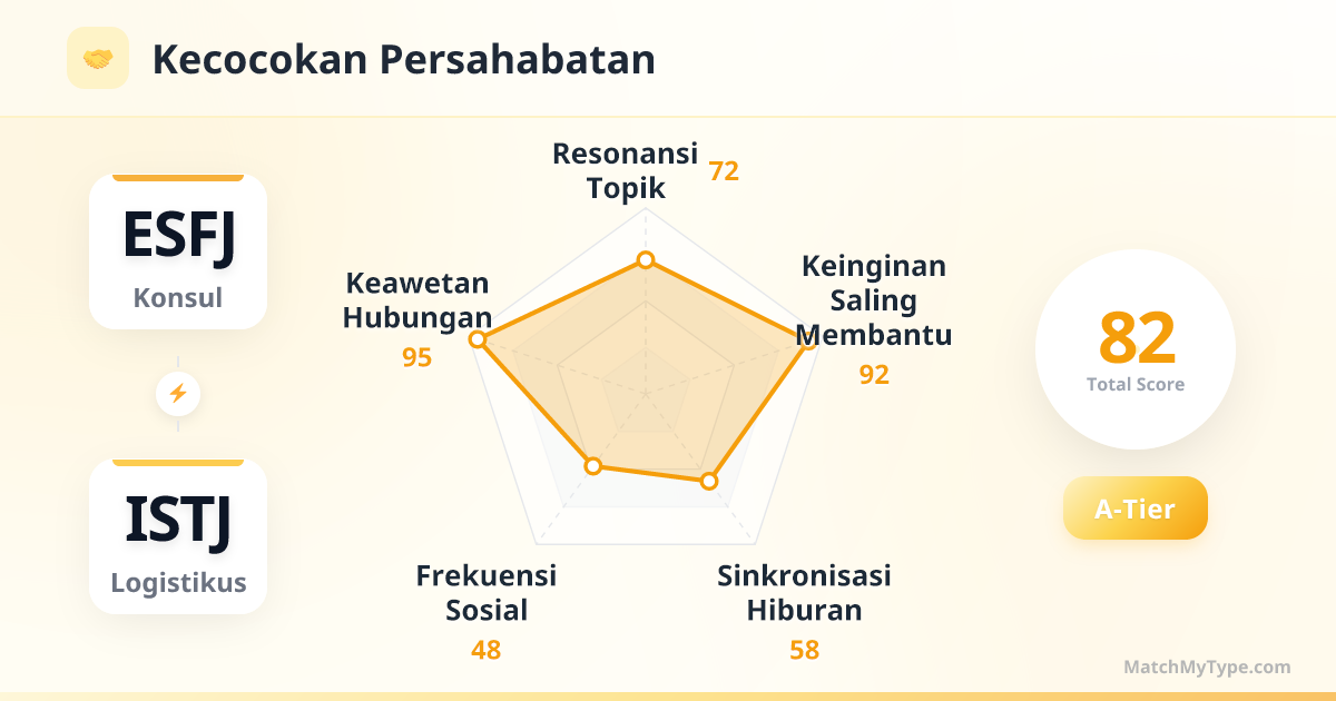 Ibarat susu hangat (ESFJ) yang bertemu dengan roti gandum (ISTJ), meskipun tidak memiliki sensasi pedas seperti hotpot, ini adalah kebahagiaan duniawi yang paling awet, mengenyangkan, dan menenangkan.