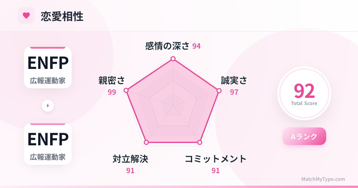 ENFPとENFPの恋愛は、驚きと笑い、そして即興の冒険に満ちた華やかな花火大会のようです。自分の笑いのツボを説明する必要も、自分の癖を隠す必要もありません。しかし、花火が消え、地面に残った灰(現実的な雑務)を前にした時、同じように自由奔放な二人は安定した避難所を築けるのでしょうか?