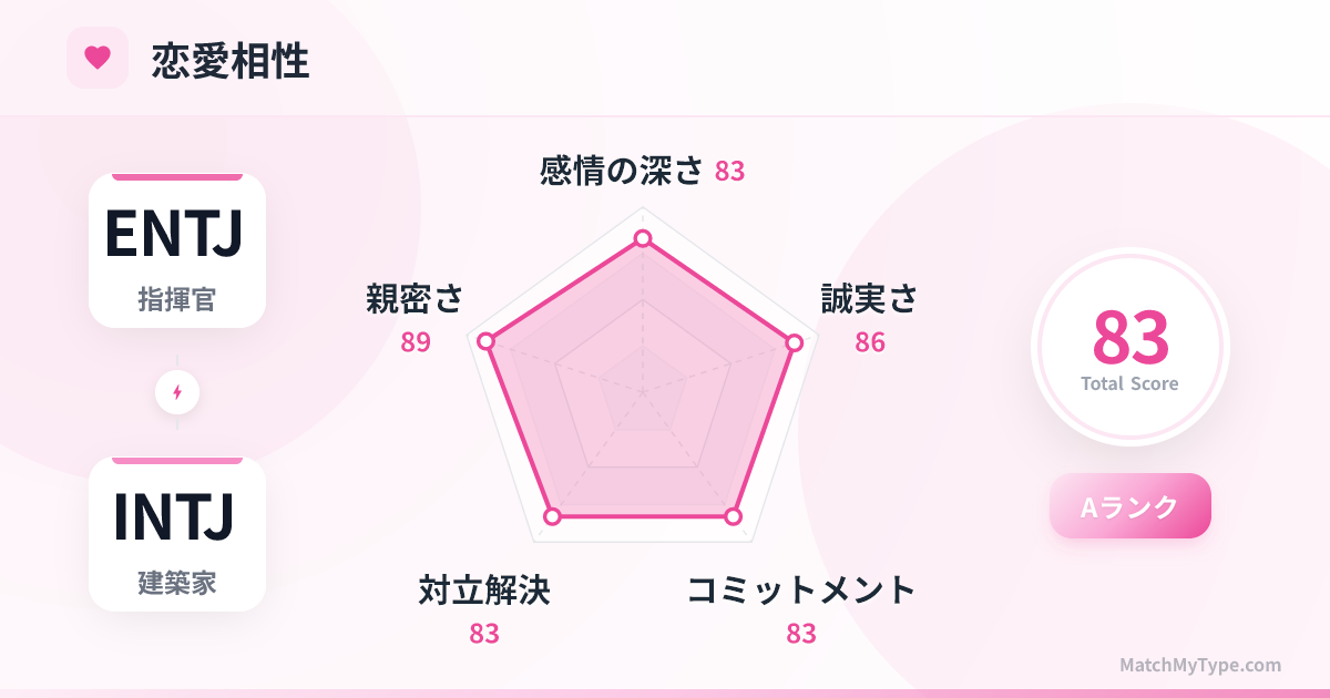 INTJは「言うことを聞く」のではなく、論理と能力に従うのです。ENTJはINTJが「この人は頭が切れる」「この人は本当にやり遂げる」と感じる数少ないタイプです。ENTJの強引さは正しい結果を伴うことが多いため、プライドの高いINTJも一時的にそれを預け、協力することに同意するのです。