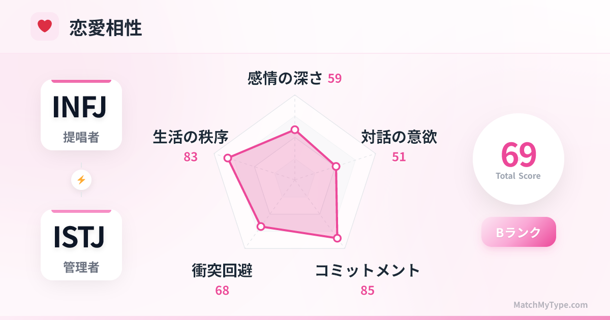 - 3**計画の変更**:二人ともJタイプで、計画が狂うのを嫌います。しかし、INFJの計画変更は気分や直感によることが多く、厳格なISTJを苛立たせます。
