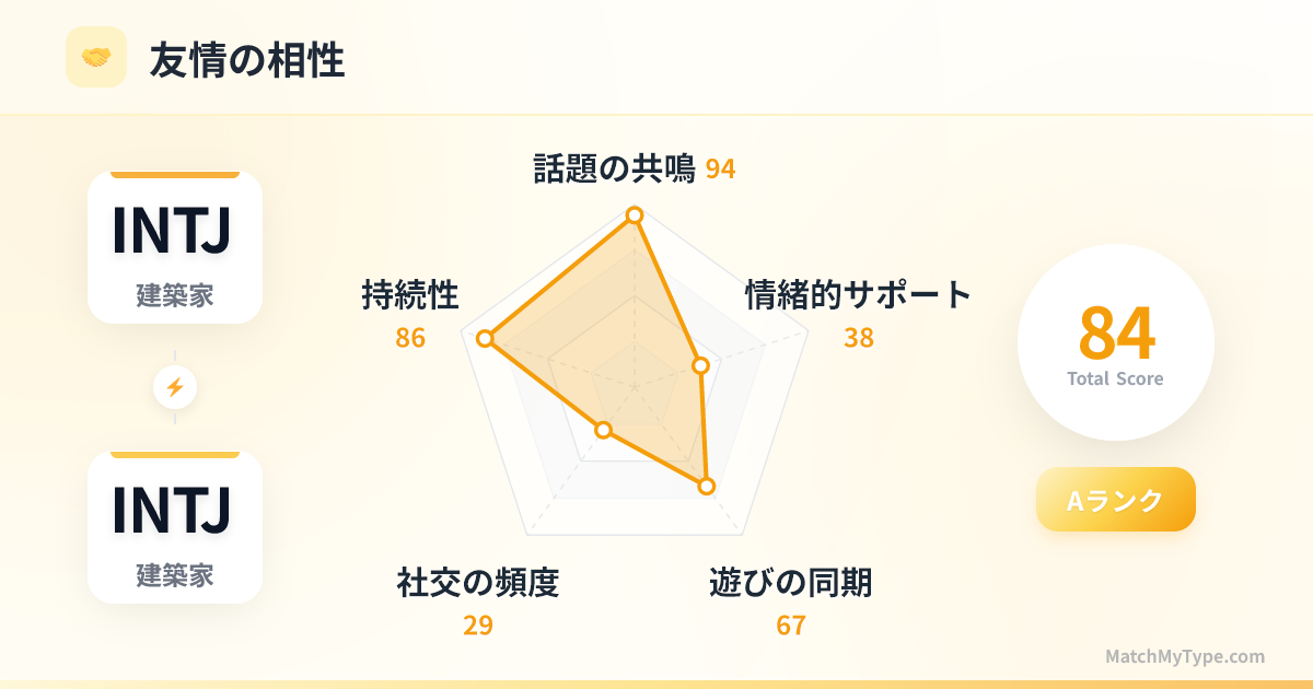 これは一種の「自己愛」の変奏曲です。INTJは生涯、自分の思考速度についてくることができ、自分の専門的な隠語を理解できる相手を探し求めています。そして最終的に、それがもう一人のINTJであることに気づくのです。この引力は、稀有な「知的安心感」から生まれます。ジョークを説明する必要も、冷淡に見える態度を謝罪する必要も、野心を隠す必要もありません。相手の中に、世界から誤解され続けてきた自分自身を見出すことで、深い帰属感を得られるのです。