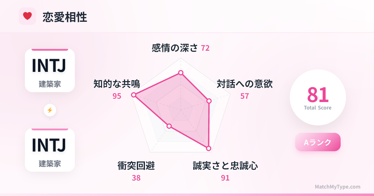 INTJとINTJの結びつきは、しばしば「ロボット同士の恋」と揶揄されます。しかし、それは彼らに感情がないからではなく、非効率な感情表現を極端に嫌うからです。この関係は「知性への崇拝」と「自立への尊重」に基づいています。二人の脳内では同じOSが稼働しているため、相手の意図を推測する無駄なゲームは必要ありません。