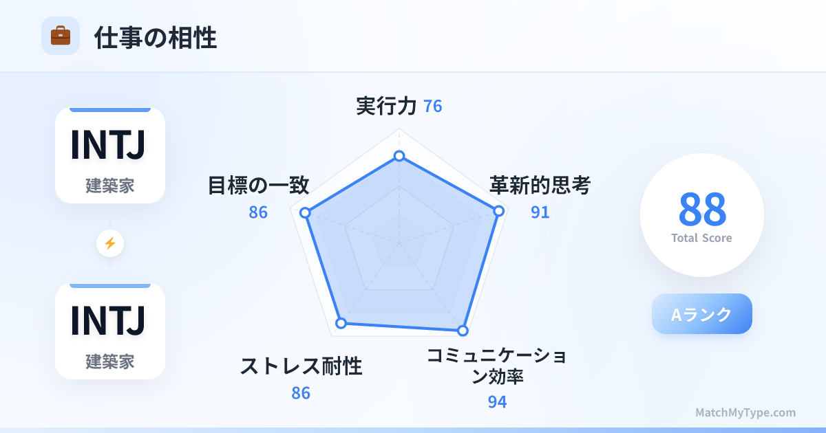 盲点の重なりと権力争い。双方が自分の直感(Ni)に固執すれば、それは災難となります。また、双方にFe(外傾感情)が欠如しているため、気づかないうちにチーム全体を敵に回す恐れがあります。完璧なシステムを設計しても、誰も「人間関係」や「事務的な根回し」をしたがらないため、プロジェクトが頓挫することもあります。