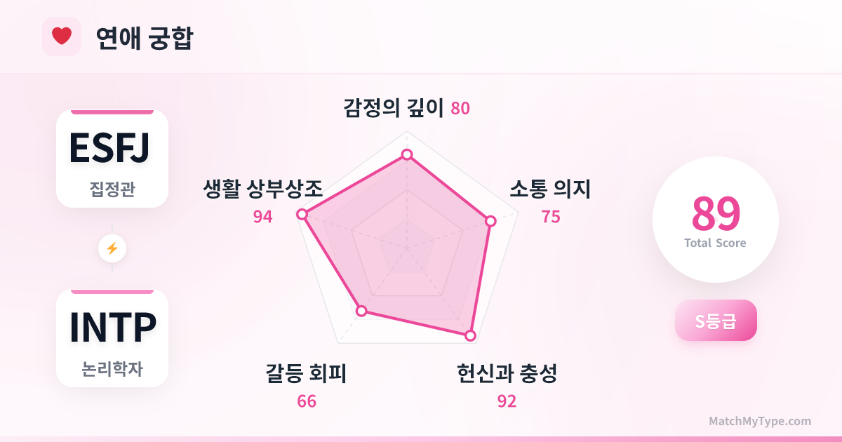 - 2**INTP의 논리적 팩폭**: ESFJ가 직장 동료와의 갈등을 토로할 때, INTP가 공감 대신 누가 맞고 틀린지만 분석하려 든다면 ESFJ는 순식간에 폭발할 수 있습니다.