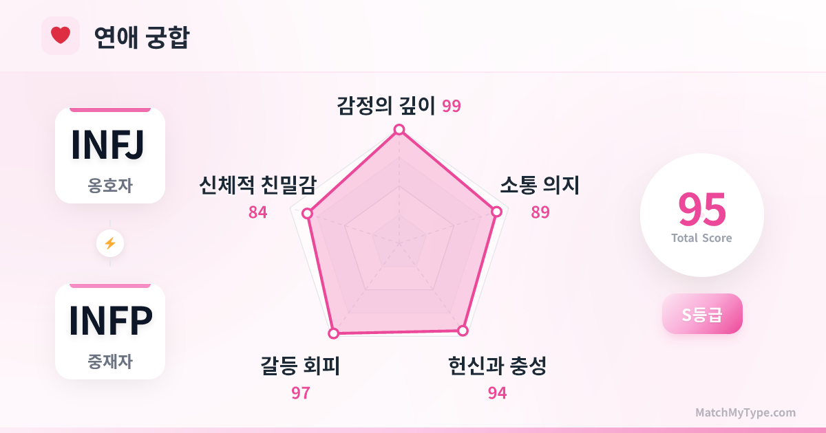INFJ가 '완벽한 결과'에 대한 집착을 내려놓고 INFP의 자유로운 아름다움을 감상하게 될 때, 그리고 INFP가 INFJ를 위해 안주 지대를 벗어나 확신 있는 응답을 줄 때, 여러분은 이 잔인한 세상에서 서로의 가장 견고한 정신적 대피소가 됩니다.