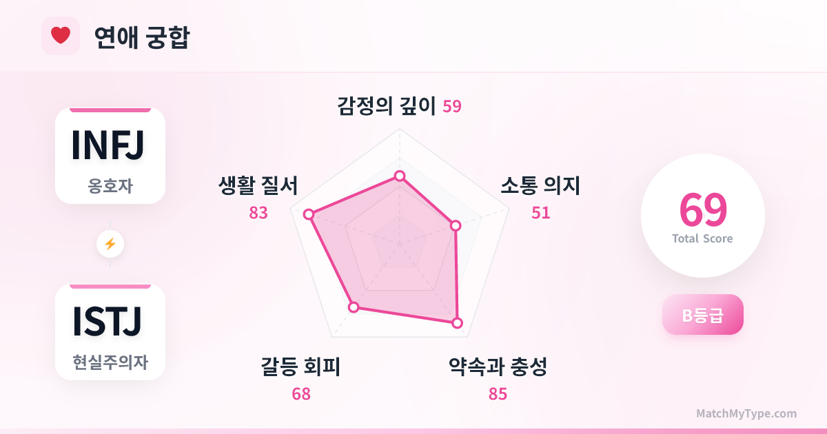 - 1**INFJ의 숨겨진 기대**: INFJ는 상대가 내 마음을 알아주길 바라지만, 이는 ISTJ에게 치명적인 고역입니다. ISTJ는 분위기를 읽지 못하므로, 말하지 않으면 모든 것이 정상이라고 생각합니다.