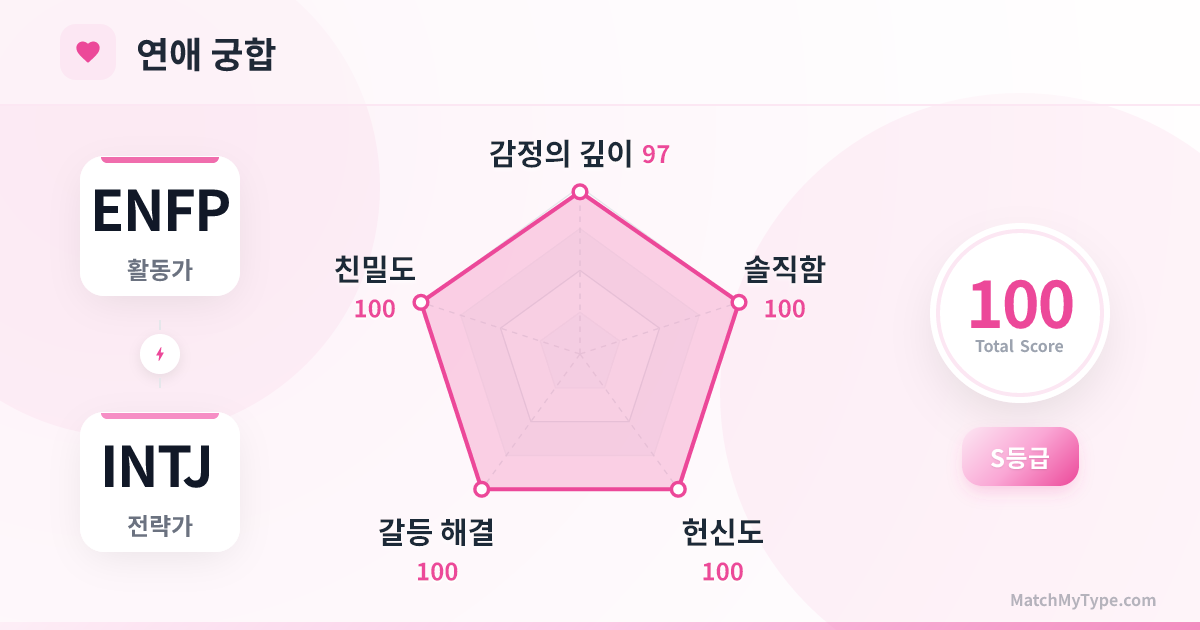 ENFP는 INTJ의 폐쇄된 요새를 뚫고 들어가는 유일한 침입자이며, INTJ는 ENFP의 혼란스러운 생각을 거대한 설계도로 엮어내는 유일한 건축가입니다