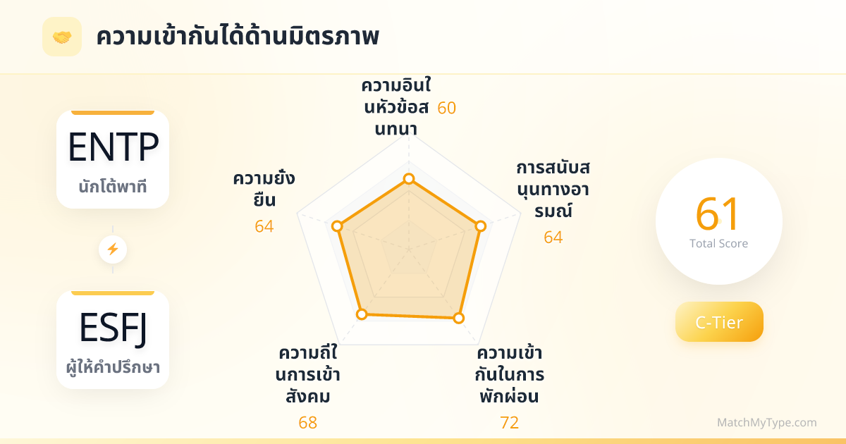 ENTP x ESFJ รูปแบบการเข้าสังคม