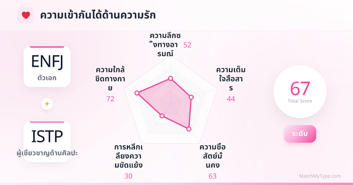 - 1**การข่มขู่ทางอารมณ์ของ ENFJ**: อย่าพูดกับ ISTP ว่า 'ถ้าคุณรักฉัน คุณควรจะ...' เพราะในตรรกะของ ISTP สิ่งนี้ใช้ไม่ได้ผลและน่ารำคาญ