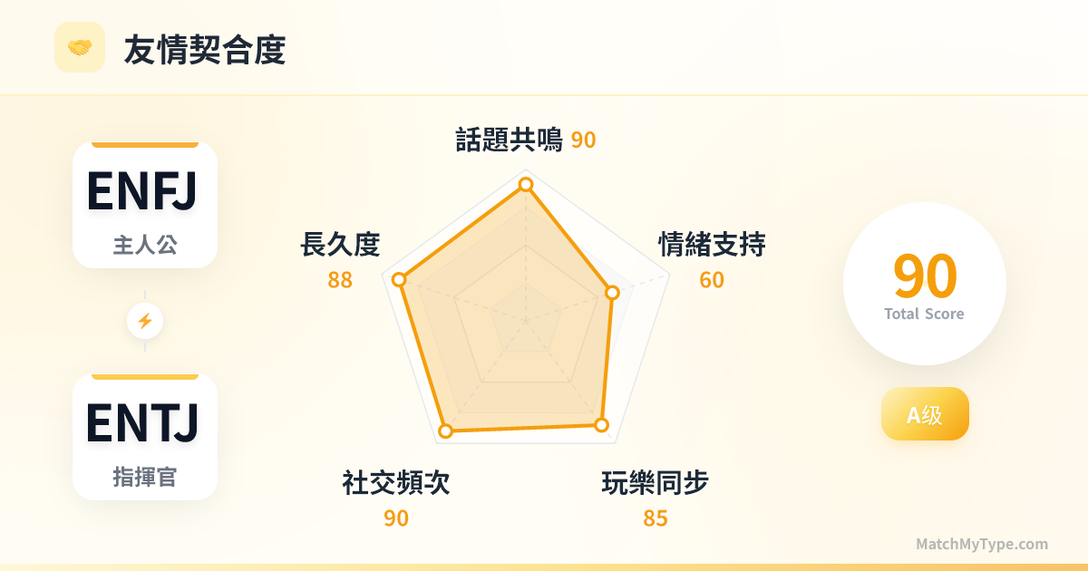 - 給 ENTJ 的建議在這個組合裡,請把你的語速放慢 10%,並在批評前加一句「你的初衷很好」。不要把 ENFJ 的人情味當成軟弱,那是他們的核心競爭力。