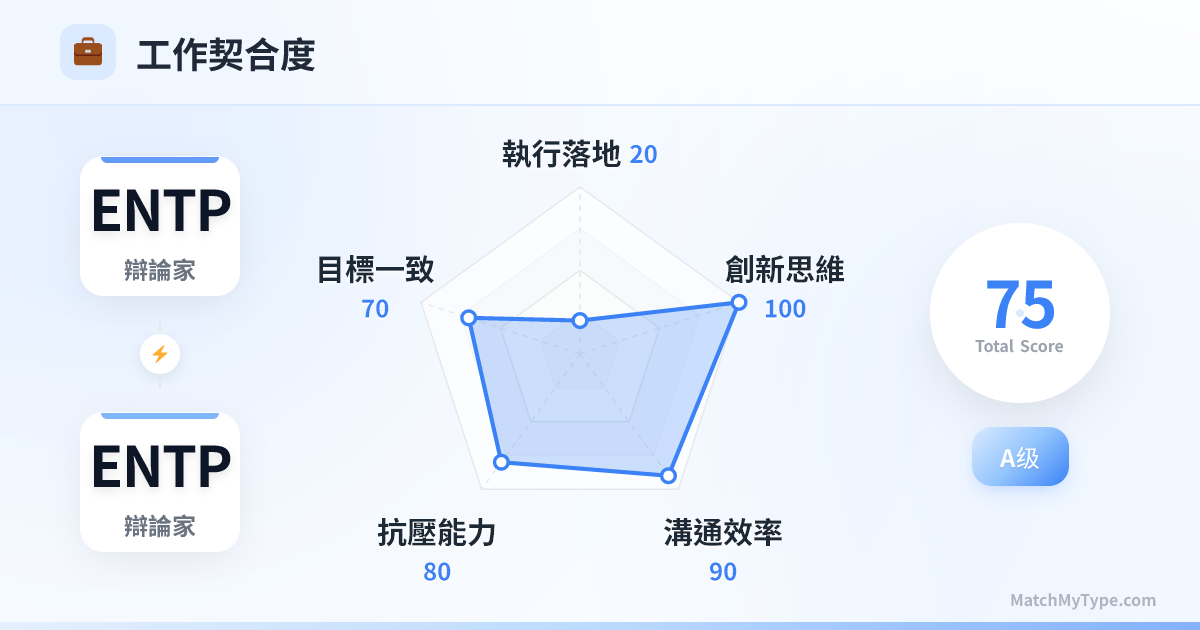 這是「點子工廠」與「執行黑洞」的結合。如果公司需要在一週內想出 100 個顛覆性的方案,找你們準沒錯;但如果需要按時交付一個完美的落地項目,那是災難。