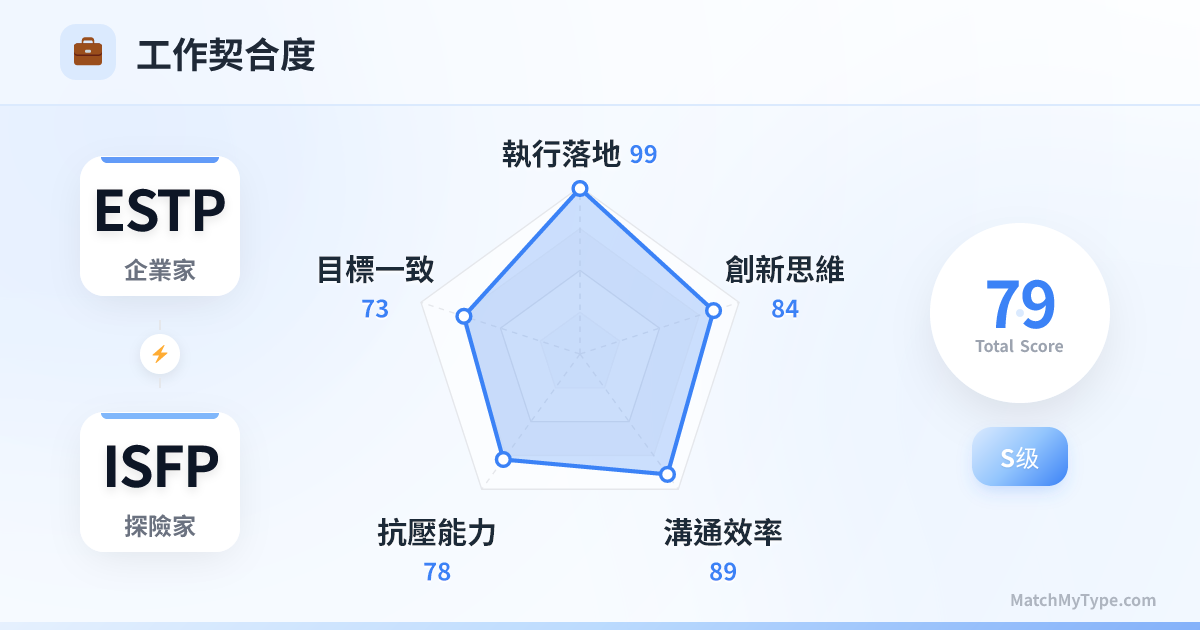 各司其職。ESTP 負責對外的「髒活累活」(談判、爭資源),ISFP 負責對內的「細活」(打磨產品)。千萬不要讓兩人一起做枯燥的資料輸入,大概率會一起摸魚。