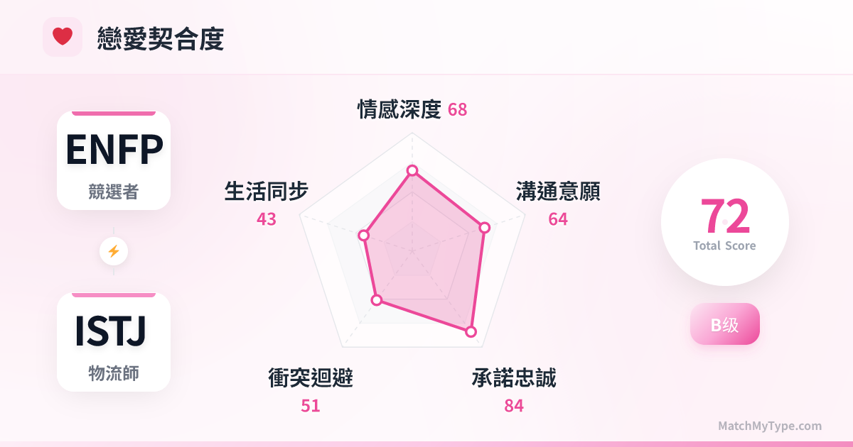 - 3**關於「有趣」的定義**:ENFP 覺得變動才有趣,ISTJ 覺得熟悉才舒服。強迫對方適應自己的節奏是大忌。