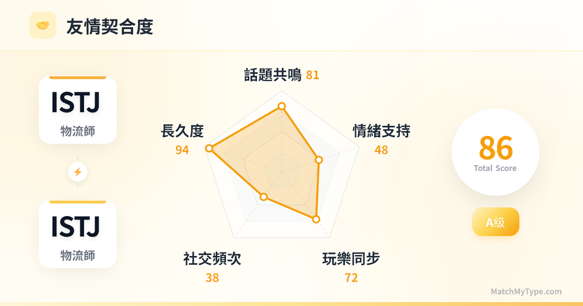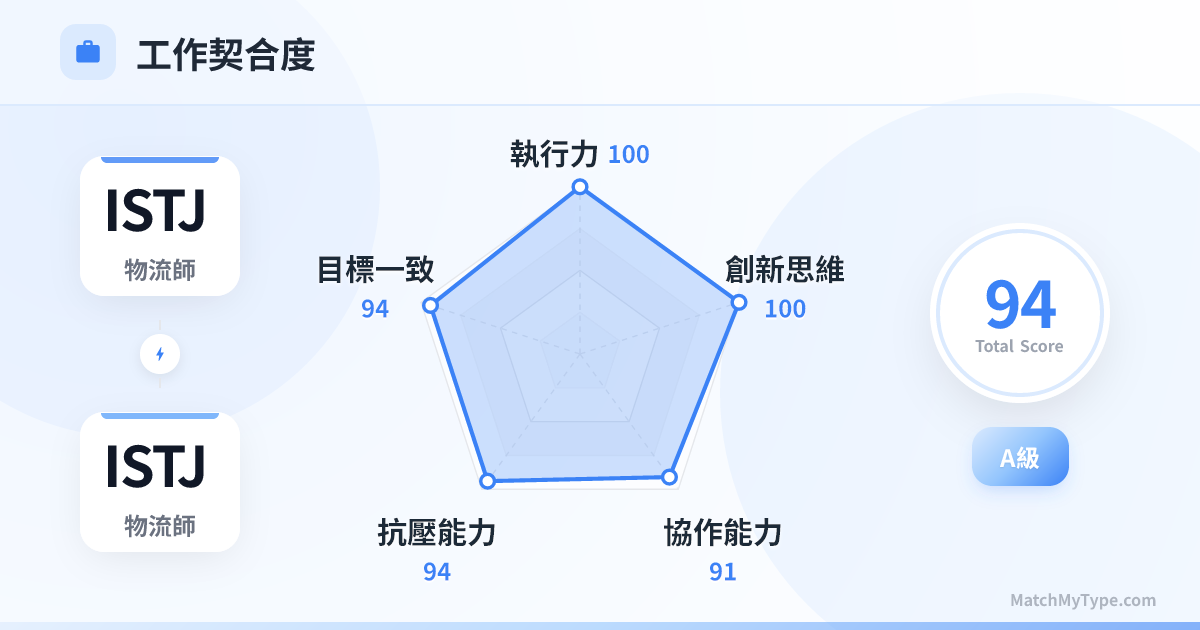 如果一個部門由兩個 ISTJ 組成,那將是全公司效率最高、出錯率最低的部門。你們是「執行力」的代名詞。只要目標明確、規則清晰,你們能把任何專案推進得如同瑞士鐘錶般精準。