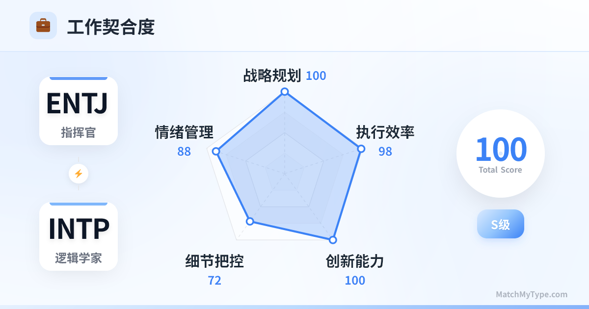 这是职场上的“核武器”组合。如果说 ENTJ 是驾驶战车的将军,INTP 就是设计战车的工程师。只要目标一致,没有任何困难能阻挡这对组合。