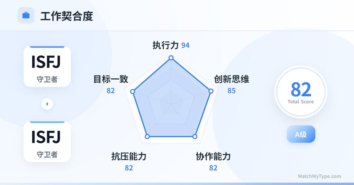 在职场上,ISFJ x ISFJ 是最令人放心的“执行特种部队”。只要给你们明确的指令和SOP(标准作业程序),你们能把细节做到极致。但在需要头脑风暴或大刀阔斧改革的场景下,这对组合会显得犹豫不决。
