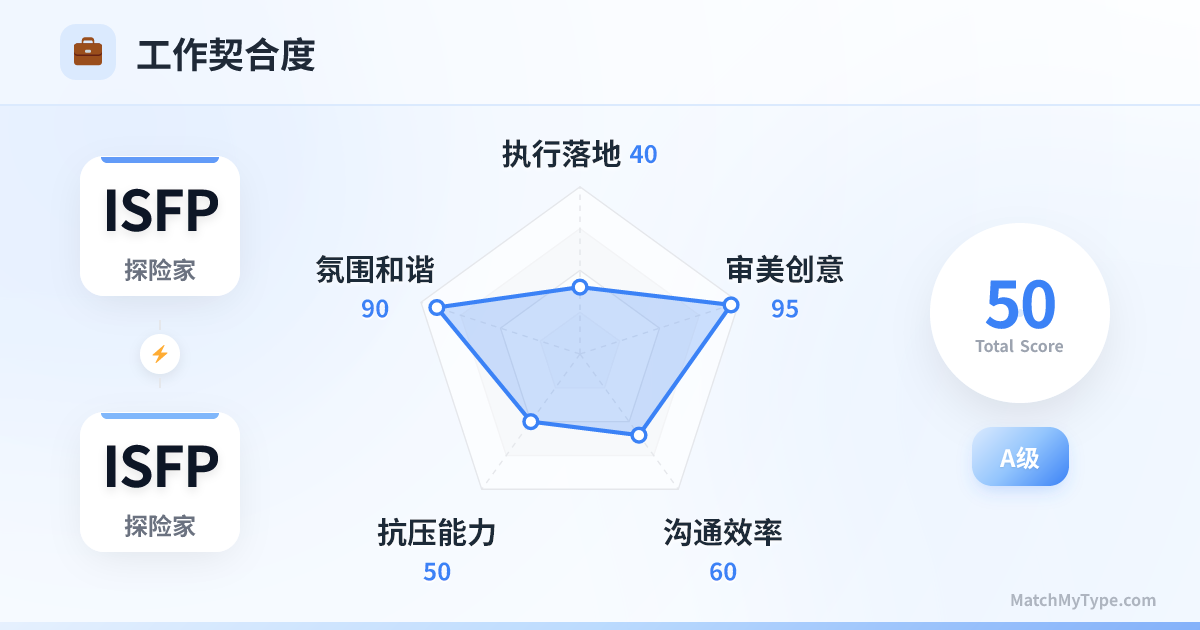 在职场中,两个 ISFP 的组合是“美学的天花板,效率的地板”。如果你们是设计工作室的合伙人,作品会惊艳世人;但如果你们需要一起赶项目进度或处理复杂的人际纠纷,那将是一场灾难。