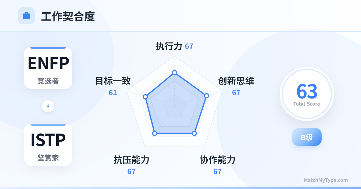 把需要“见人”的活儿给 ENFP,把需要“见物”的活儿给 ISTP。千万别让 ISTP 去做客户安抚,也别让 ENFP 去做精密的数据核对。